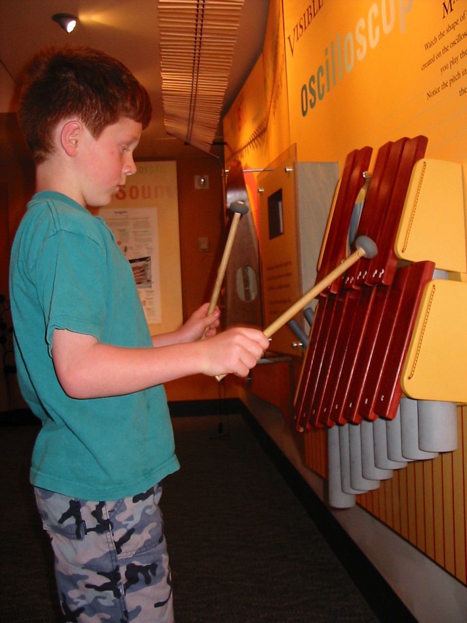 Non-member Jacob Smargiassi tries the Soundbridge Science of Sound exhibit
