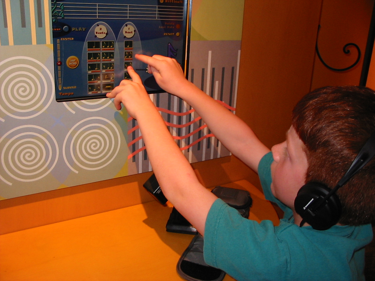 Jacob Smargiassi demonstrates another Soundbridge interactive exhibit kiosk.