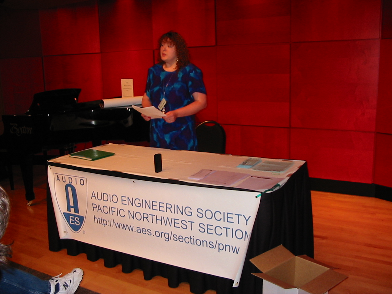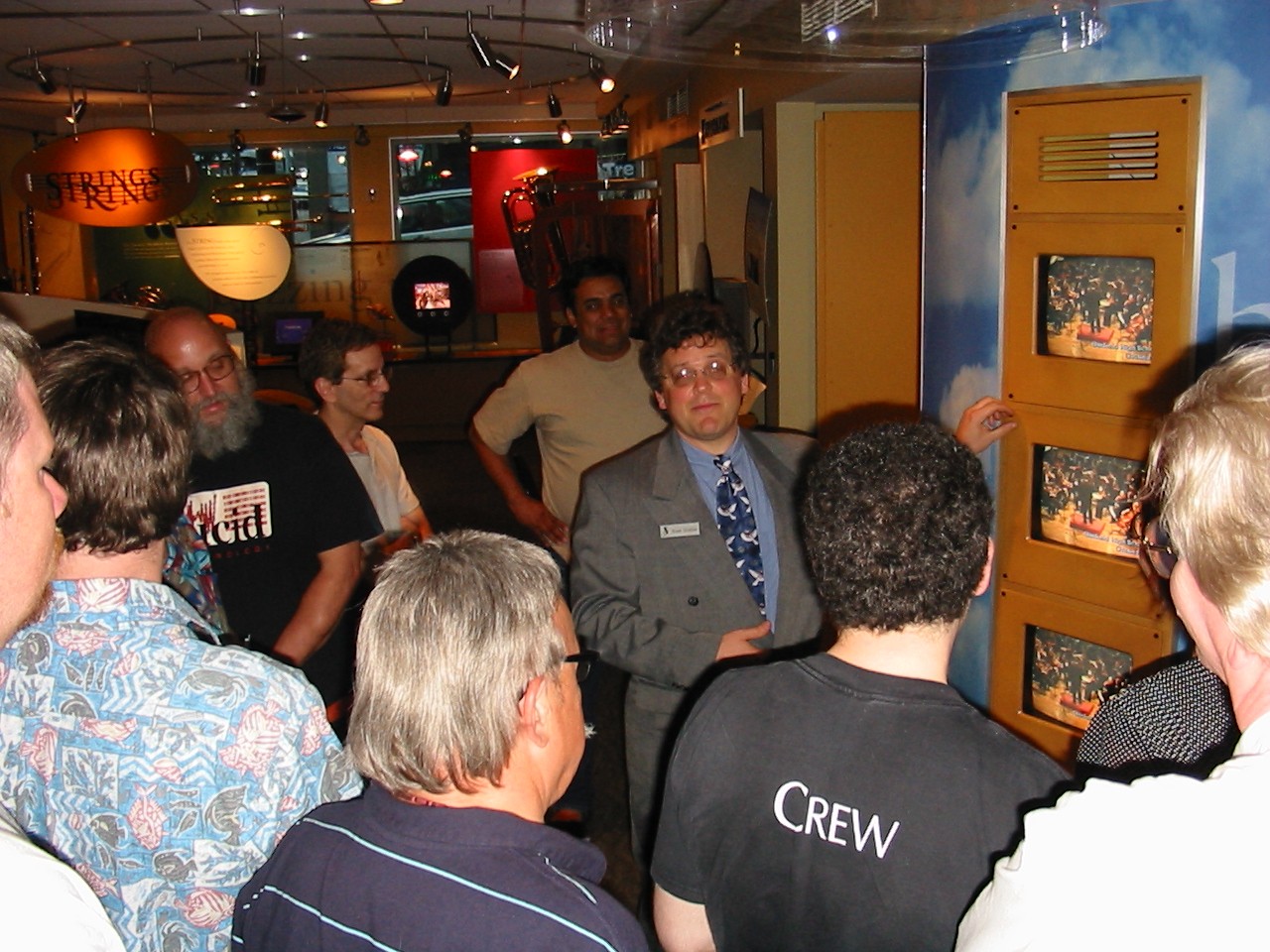 Bryan Stratton, Soundbridge Manager (in suit), describes the music bar to attendees, including PNW Chair Aurika Hays (L) and Secretary Gary Louie
