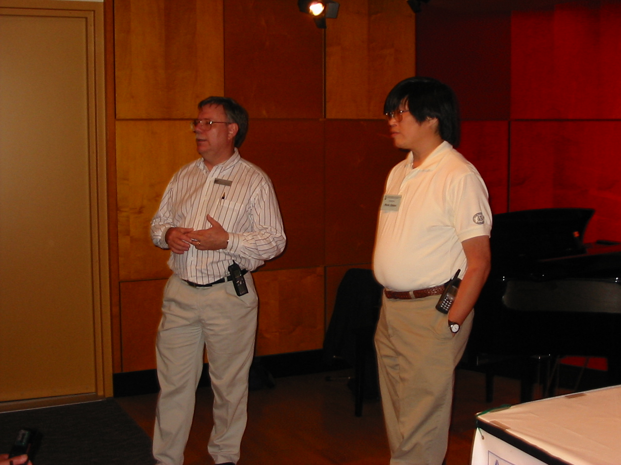 Benaroya sound engineers Ron Hyder and Rick Chinn (L-R) describe sound system in main auditorium