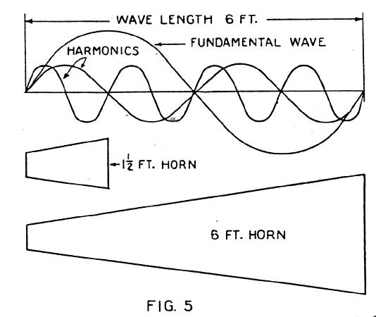 Illustration 7 - Fig. 5 shows how short horn will respond to harmonics of certain wave-lengths whereas a horn ofthe same length as the wave responds to full wave.