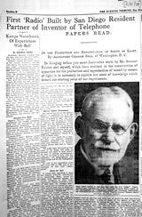 The San Diegan was awarded a gold medal at the Paris Electrical exhibition of 1881 for his part in the invention of the "photophone." In 1889, he was made "Officer de l'Instruction Publique" of France for his graphophone inventions. These also won him Philadelphia's John Scott medal in 1900 and another from the Panama Pacific International exposition at San Francisco in 1915. The American Association for Advancement of Science made his a fellow in 1880 for his work on the "photophone," and just recently the society awarded him the coveted honor of feloow emeritus fo his more than 50 years of membership.