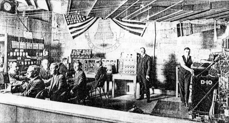 Control room at San Francisco, with speaker hanging from ceiling on right, photo from AT&T Archives |