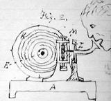 Tainter and Chichester Bell and A. G. Bell began work on improving the phonograph in the spring 1881, and found that the indenting method using a pliable strip of tin foil was the main problem. Some other method of engraving a solid material needed to be developed, using a cutting stylus to form a groove. This "new method of recording and reproducing sounds which I had brought to Mr. Bell's attention several months before" was illustrated on the first page of Tainter's "Home Notes" with this description: "I have had in my mind for several months past a method of obtaining a record of speech vibrations, and of reproducing the speech from the record so made. The idea occurred to me while discussing the phonograph, and the defects of that instrument with Mr. Bell, and he seemed to think very highly of it at that time. This idea together with some others upon the same subject, was noted upon a piece of paper as our note-book was not at hand at the time they occurred to us. This paper has doubtless been lost or destroyed before this, and I will note the idea here. [illustration] Fig. 1 is a plan view of my phonograph (or graphophone) and Fig. 2 is an end elevation partly in section... Attached to the end of the axle E. is a large circular disk K. upon which the speech vibrations are to be recorded. This disk can be made of some soft metal that can be easily engraved, or it can be made of some light substance, like hard rubber, ivory, celluloid, or box-wood. " [3]