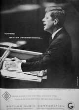 In the 1950s, the axial microphone became popular with a ribbon transducer located in the end of a slender cylinder, ideal for portablility. KM54 - "After the introduction of the KM54 in 1954, it very quickly acquired an excellent reputation as a voice microphone for radio and television. It was used in many chambers of parliament and served at the lectern of the United Nations General Assembly in New York. It was equally successful as a supporting microphone for musical recordings. The KM 54 was produced from 1954 to 1969. Thousands of highly revered 54s are still in service today." The Gotham Audio Corp. ran an ad in 1961 featuring JFK speaking at UN into pair of Neumann mics - "President John F. Kennedy Addressing the UN on the Berlin Problem - Sept. 25, 1961" - "Neumann is honored to serve United Nations communication through the accurate and reliable performance of their world famous microphones."