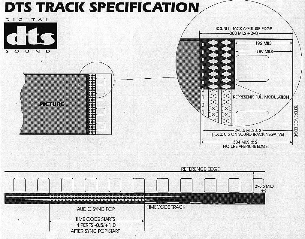 1993 - Jurassic Park released May 30 as the first film with DTS sound, developed by Terry Beard, founder of Digital Theater Systems in Westalke Village, CA, partly owned by Steven Speilberg and Universal Pictures. This digital sound film format records 6 tracks on separate CD-ROM disks, synchronized by an optical timecode track recorded on the film, co-existing with a backup optical soundtrack similar to Dolby Stereo.