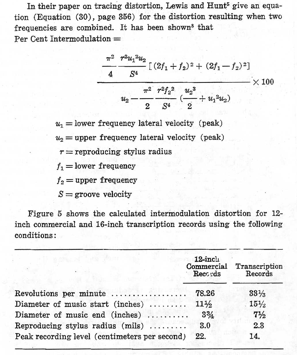 In their paper on tracing distortion, Lewis and Hunt [5] give an equation (Equation (30), page 356) for the distortion resulting when two frequencies are combined. It has been showng that Per Cent Intermodulation =