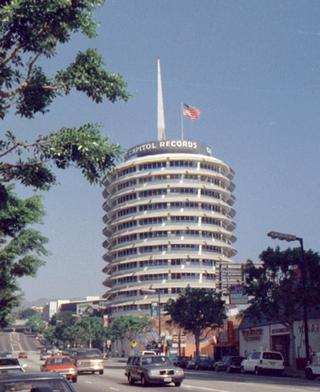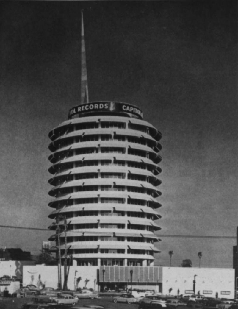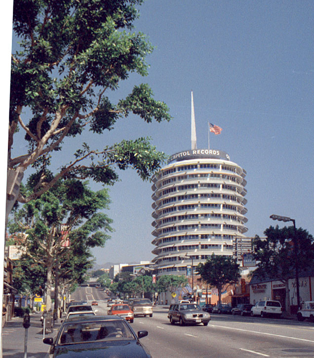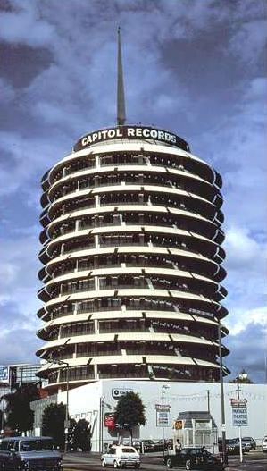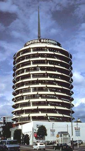 | Songwriter Johnny Mercer created Capitol Records in 1942 with Hollywood music store owner Glenn Wallichs and movie producer Buddy DeSylva. According to Stephen Fratallone's 60th anniversary tribute article, "Like Mercer's musical genius, Capitol Records was new, fresh and revolutionary. He wanted to form a record company where music that was recorded and the artists who recorded it were treated differently. He wanted to give new artists and veteran artists alike the freedom to grow and to expand their artistic palette. Capitol Records provided a competitive alternative to the three major record companies of the day -- Victor, Columbia and Decca -- all established in New York. With his new record company, Mercer helped to change the sound of American pop music and the way it was made. In her autobiography, It Might As Well Be Spring, singer Margaret Whiting, a close personal friend of Mercer's and one of the first singers to record on the new label, wrote that he "was a man bursting with talent and always looking for a place to channel his energies. This idea of a record company seemed ideal." Mercer took his idea to one of his best friends, Glenn Wallichs, the owner of Music City, the biggest record store in Los Angeles situated across from NBC. Wallichs loved the thought of being a part of such a venturesome endeavor. It was agreed upon that Wallichs would run the business while Mercer would find the artists and supervise their artistic output. All that was needed to set Capitol Records into motion was financial backing. Mercer looked to Buddy DeSylva, who, besides being a great songwriter in his own right, had become head of production at Paramount Studios. He had hired Mercer to do the score with Victor Schertzinger for The Fleet's In, a musical with William Holden, Dorothy Lamour, Eddie Bracken and Betty Hutton. DeSylva was also excited about Mercer's new project and quickly wrote him out a check for $25,000. Capitol Records was now in business." Paul Whiteman and his band recorded the songs for Capitol's first release #101 on June 5, 1942, the instrumentals "I Found a New Baby" and "The General Jumped At Dawn." Whiteman recorded those first sessions at the C.P. MacGregor studio on Western off Wilshire Boulevard. Red Hot Jazz provides online all 8 sides that Whiteman recorded for the first Capitol record releases. The Whiteman band singer Larry Orenstein wrote lyrics about the D-Day invasion in 1944 to the tune of "The General Jumped At Dawn" for the song that was sung by the Golden Gate Quartet in the Warner Bros. film Hollywood Canteen. Martha Tilton was an early artist for Capitol who recorded "The Angels Cried" for Capitol #105 in 1942 and many others over the following years. Her complete Capitol recordings were released in 2000 on the 2 CD set "Liltin' Miss Tilton: Complete Capitol Recordings." Ella Mae Morse recorded "Cow-Cow Boogie" at the MCGregor studio for Capitol's second release #102 that became the studio's first million seller. By 1946 Capitol has sold 42 million records and was established as one of the Big 6 studios. In 1950 Capitol built its own studio on Melrose Avenue in Hollywood. In 1955, EMI acquired Capitol Records for $8.5 million. The Electric and Musical Industries (EMI) company was created in Britain in April 1931 by the merger of British Gramophone Company and the Columbia Graphophone Company. In November 1931 it had opened one of the world's great recording studios in North London at 3 Abbey Road. By 1955 Capitol was the fourth largest American record company, emphasizing popular music with Nat King Cole, Stan Kenton, Peggy Lee, Dean Martin. Frank Sinatra made 19 albums with Capitol 1954-62, with arrangers Axel Stordahl and Nelson Riddle. EMI decided to build a new studio in Hollywood that would be state-of-the-art equivalent to its Abbey Road studio in London. The present Capitol Tower building was constructed in 1956 at 1730 Vine Street near Hollywood Boulevard. According to James Bayless, "In February of 1956, Capitol Records reached a long planned-for goal when West Coast operations were consolidated in a new combined studio and office building in Hollywood. The building is unique in a number of ways. It has already become a Hollywood landmark as it is the world's first office building in fthe form of a round tower. Now widely known as the 'Capitol Tower', the building was designed by Welton Becket, noted architect, and is a modern, striking, earthquake-resistant reinforced-concrete structure. It is 13 stories tall and 150' high, the maximum building height permitted in Los Angeles. The decor is in keeping with the outward appearance of the building. The ground floor, the only rectangular part of the building, is actually a separate structure which surrounds the tower and was joined to it after the entire tower was completed. It houses the Recording Department offices, tape-to-disk dubbing rooms, and three recording studios which were designed to be as modern and striking as the building itself." |