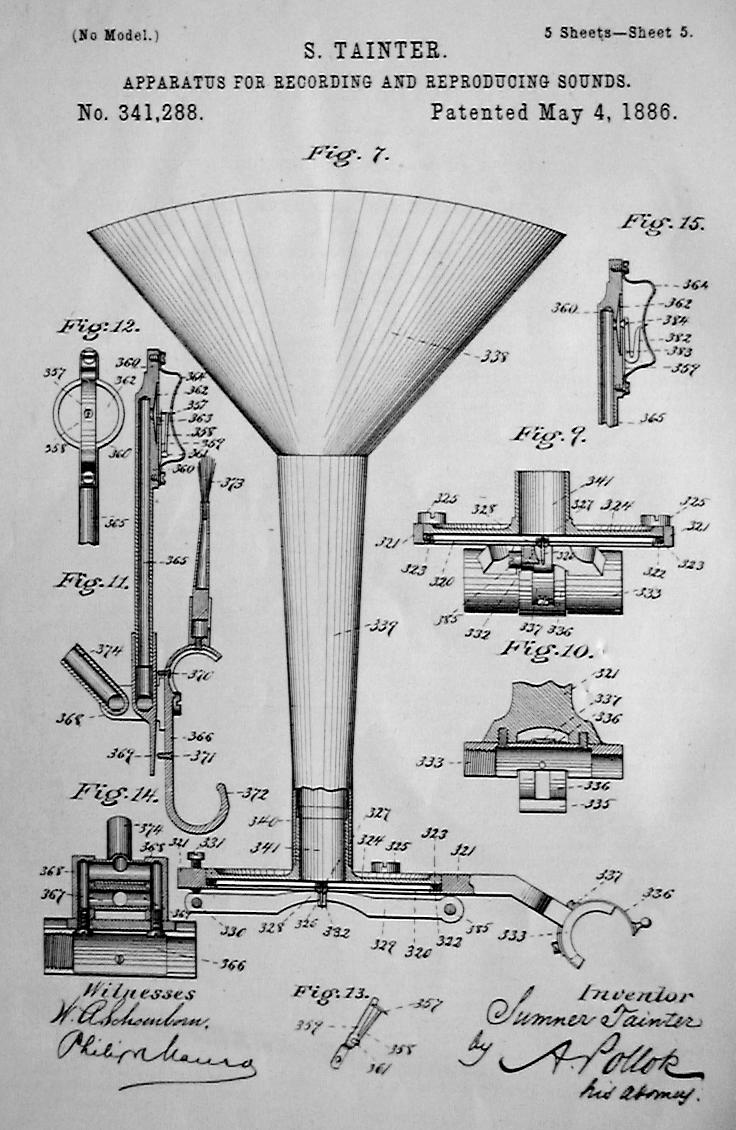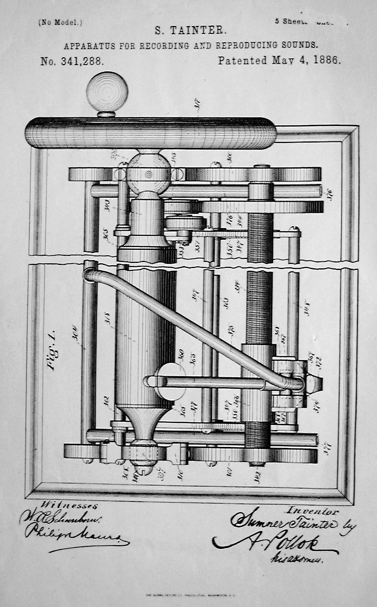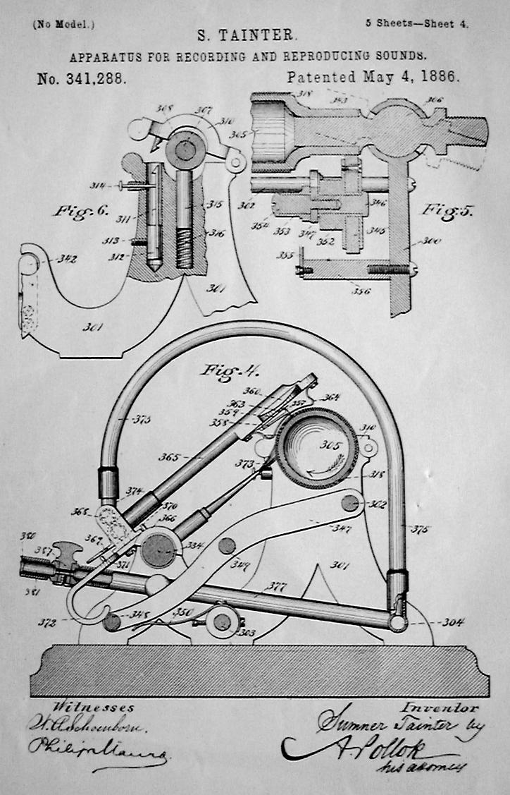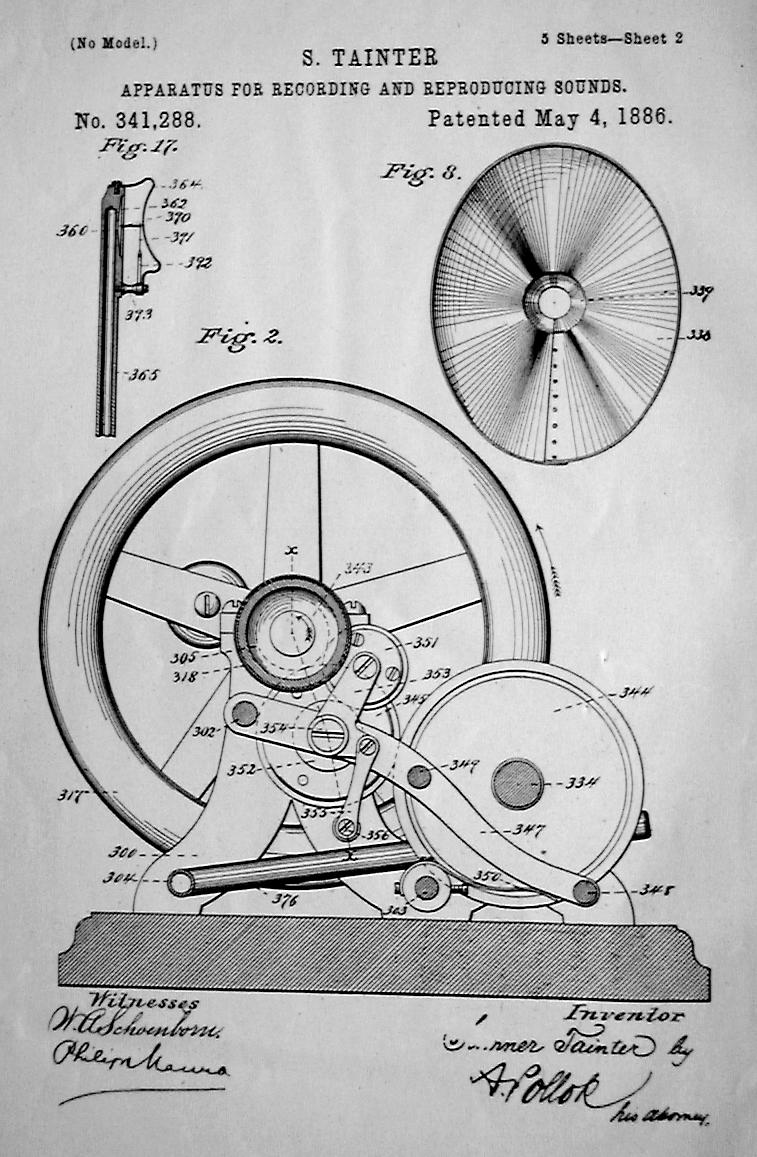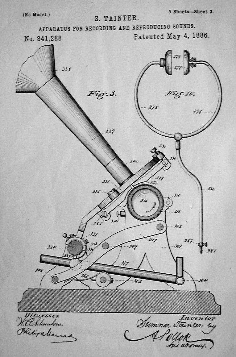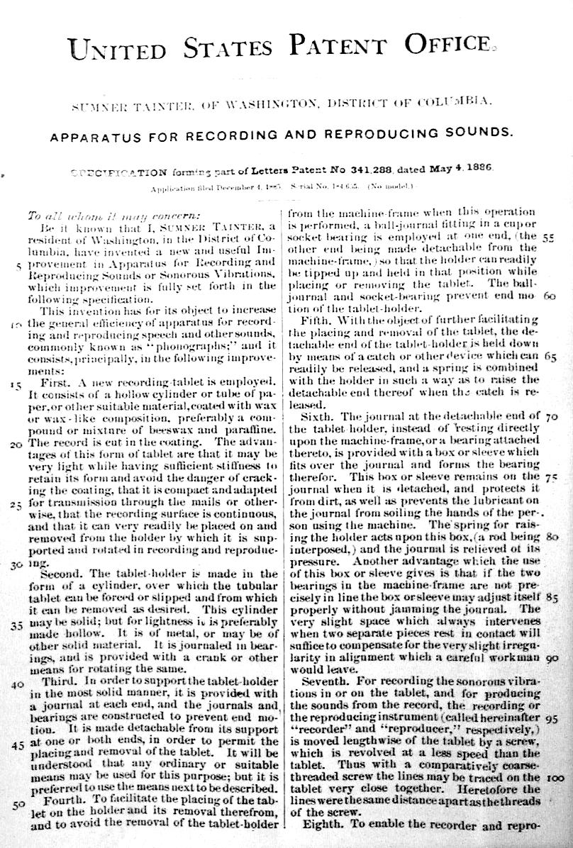 Tainter patent 341,288 - Apparatus for recording and reproducing sounds 1886/05/04