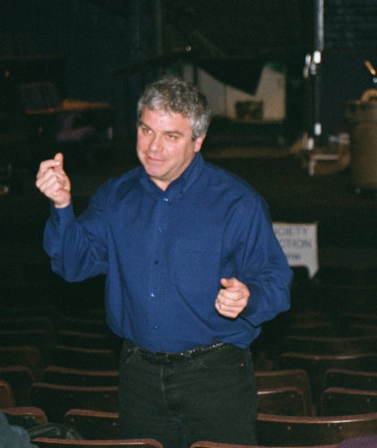 Bill Droege gesturing towards the ceiling