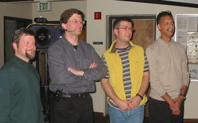 L-R Mike Wall, Program Manager-CODECs @ Microsoft; Mike Sokol; Johnny Bregar, Microsoft; Hector LaTorre, Fits and Starts Productions