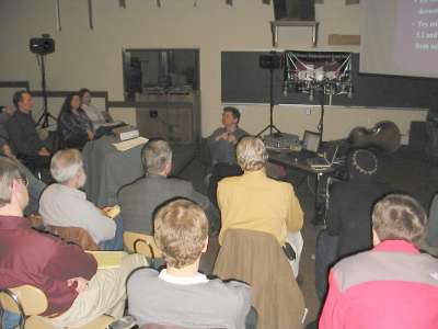 L-R PNW Vice-Chair Dave Tosti-Lane (back to camera), presenter Mike Sokol, PNW Committeeman boB Gudgel