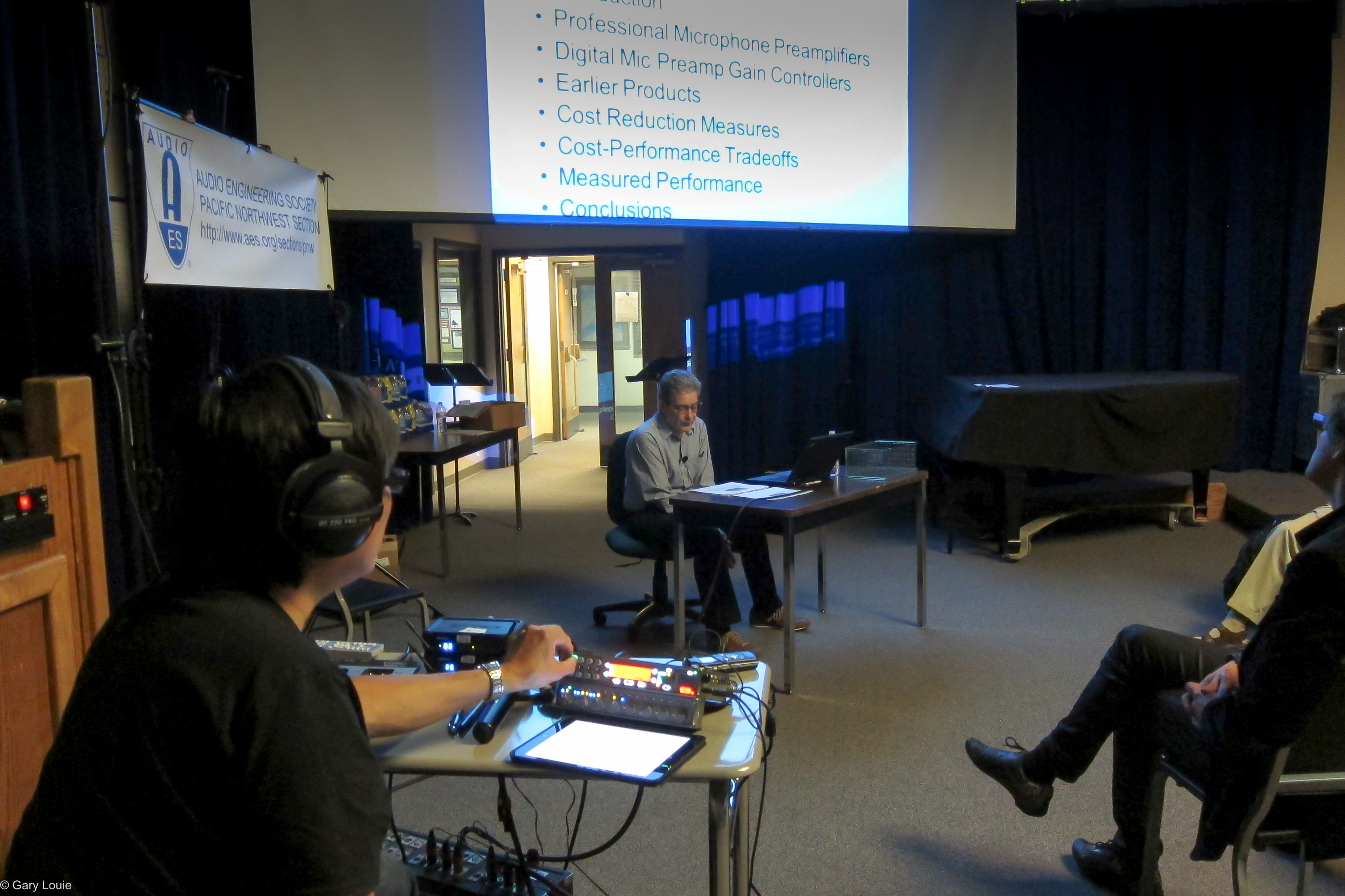 The PNW Section held its season closing and Annual Business Meeting June 29, 2016, and hosted Gary Hebert, CTO of THAT Corp, who spoke about his company's development of a lower cost digital gain control IC for microphone preamps. About 23 AES members and 8 non-members attended the meeting, held at Shoreline Community College (SCC) in Shoreline, WA.