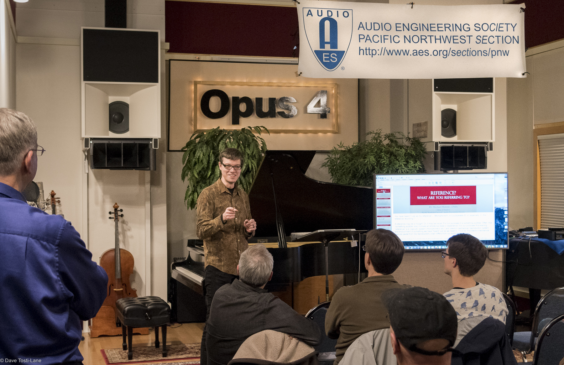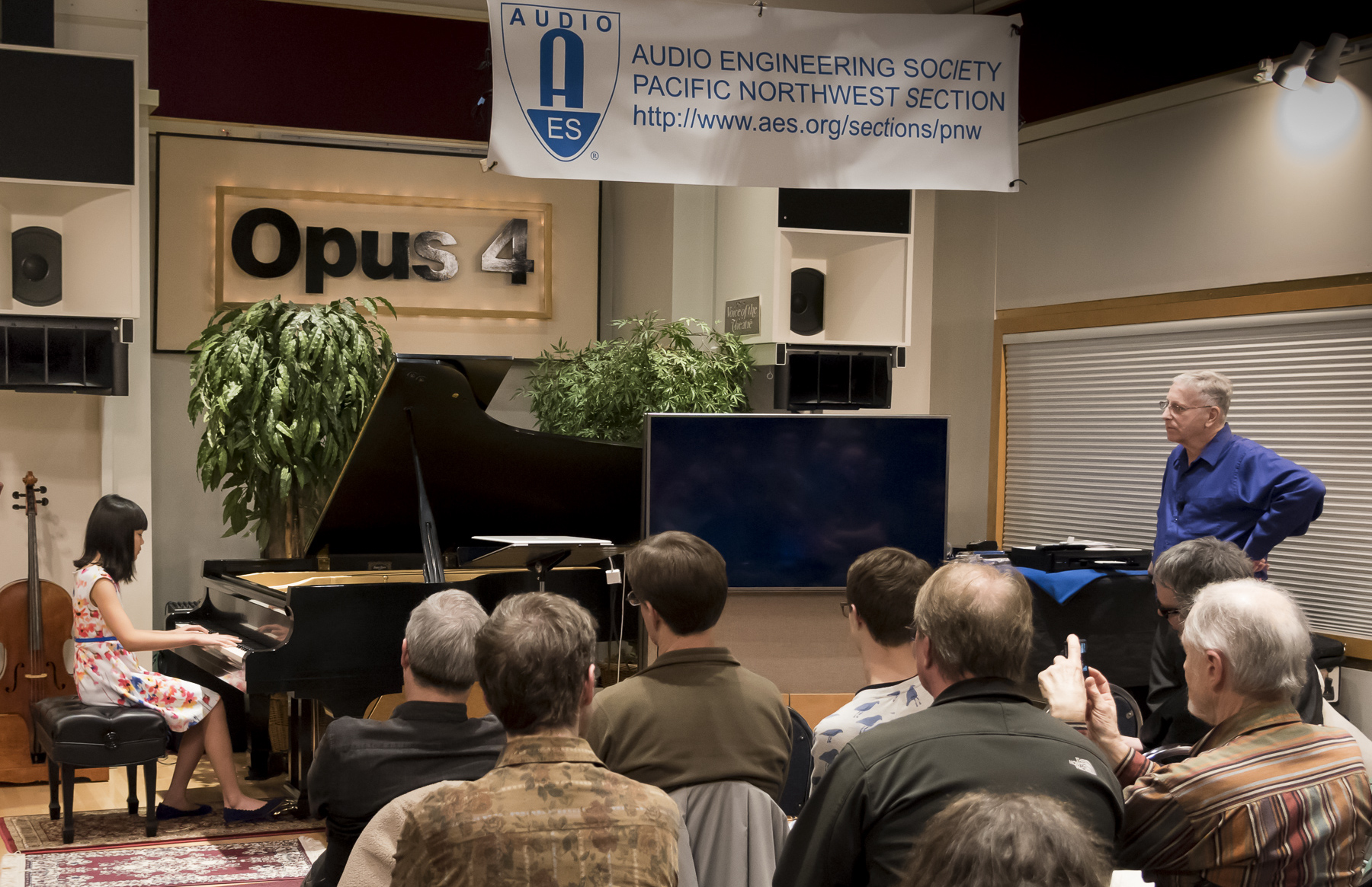 The February meeting of the Pacific Northwest Section of the Audio Engineering Society was hosted by Dr. Michael Matesky at his Bothell, Washington facility, Opus 4 Studios. There were roughly 40 attendees of whom 14 were members of AES.