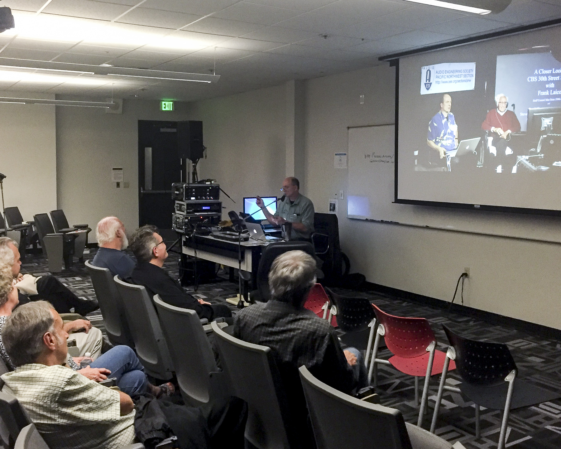 The PNW Section kicked off its 2017-18 season of activities with a presentation by PNW Chair Dan Mortensen on the history of famed Columbia Records' 30th street studio in NYC. 14 members and 10 guests attended the meeting held at DigiPen Institute of Technology in Redmond, WA.