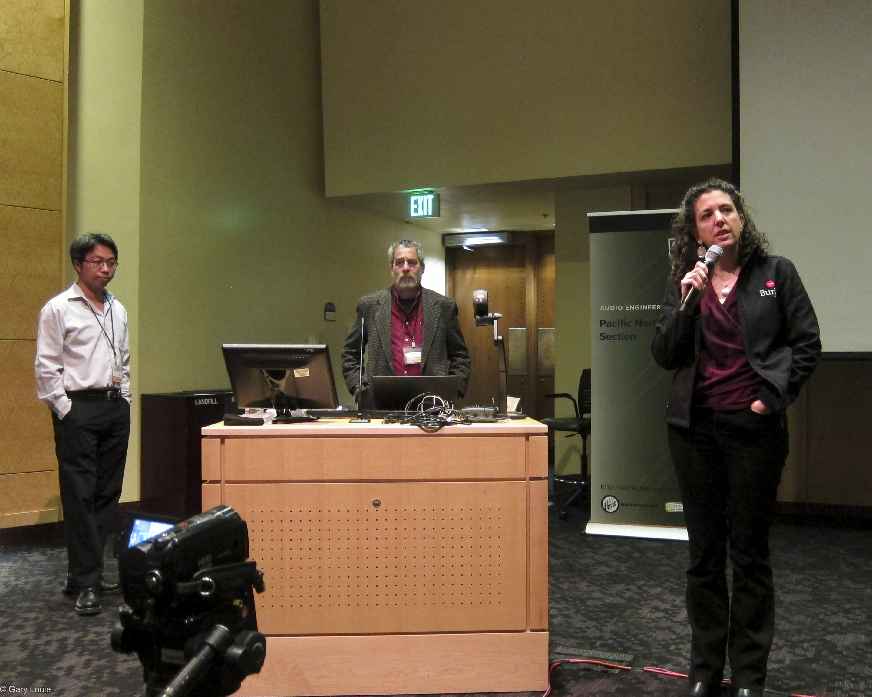 Introductions were given by Dan Mortensen of the AES PNW Section, Katie Bunn-Marcuse, Curator of Northwest Native Art, Burke Museum, and Prof. Shih-Chieh Hsu, Assistant Professor, UW Dept. of Physics. Bunn-Marcuse related how Dr. Haber had worked on early NW native recordings for the Burke.