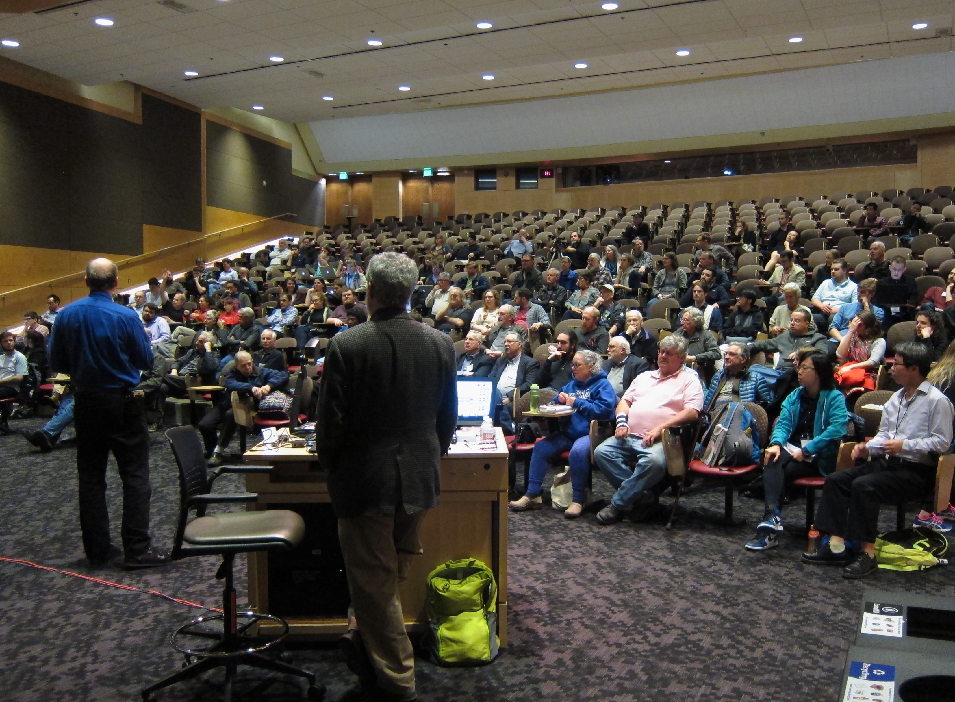 AES-PNW Section Chair Dan Mortensen, with presenter Dr. Carl Haber, address the audience to kick off the well attended presentation sponsored by UW Physics and AES-PNW Section, Bill Holm Center @ The Burke Museum, and UW DXARTS.
