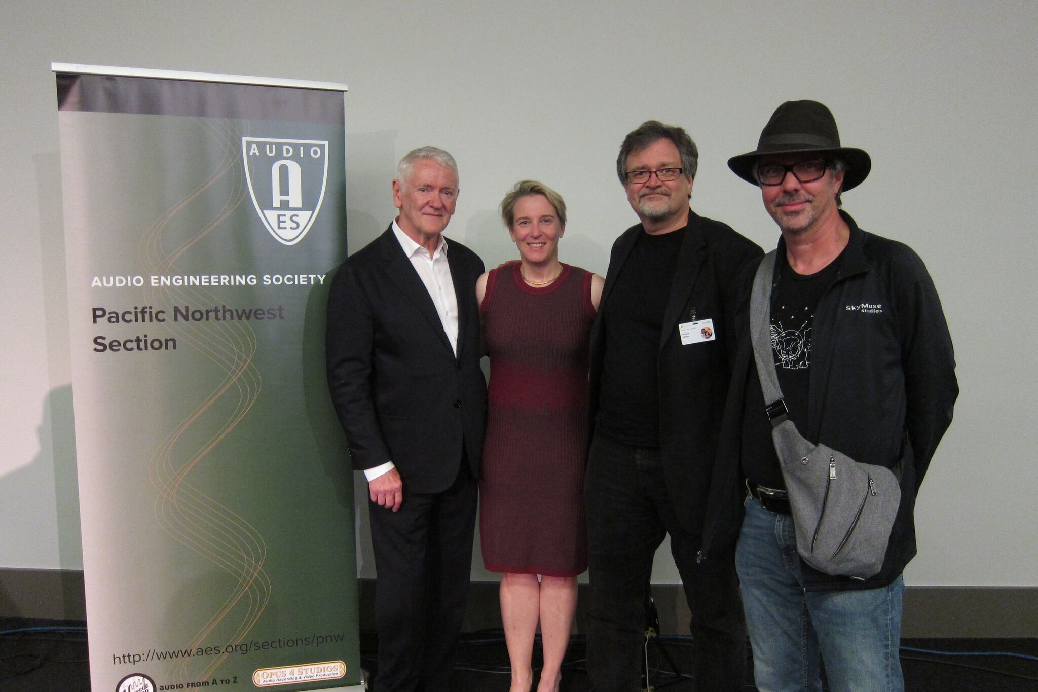The PNW Section began its 2018-19 season of meetings with a demo/discussion of 3-D and immersive recordings by Ulrike Schwarz and Jim Anderson of Anderson Audio NY. Jim is a multi-Grammy winner, past AES President, and a faculty member of the NYU Clive Davis Institute of Recorded Music. Ulrike is a recipient of multiple European awards including the Diamant d'Opera, Diapason d'Or and Echo Klassik. Some 63 people (29 AES Members) came to the Microsoft Dolby Atmos theater on the Redmond Microsoft campus.