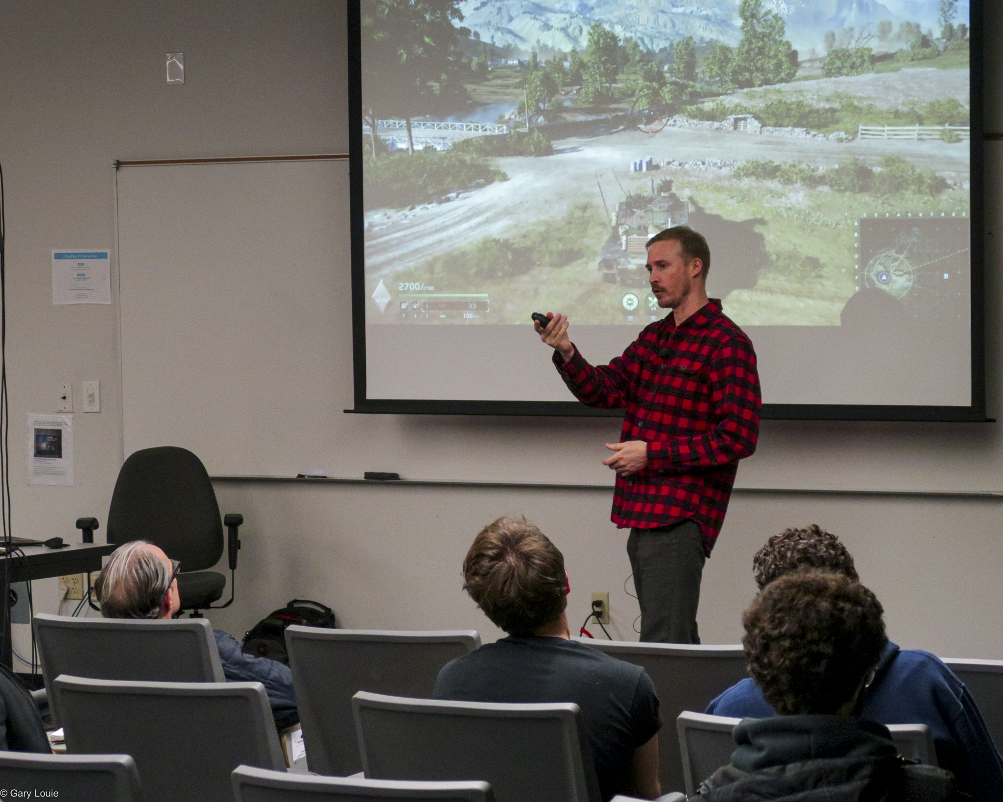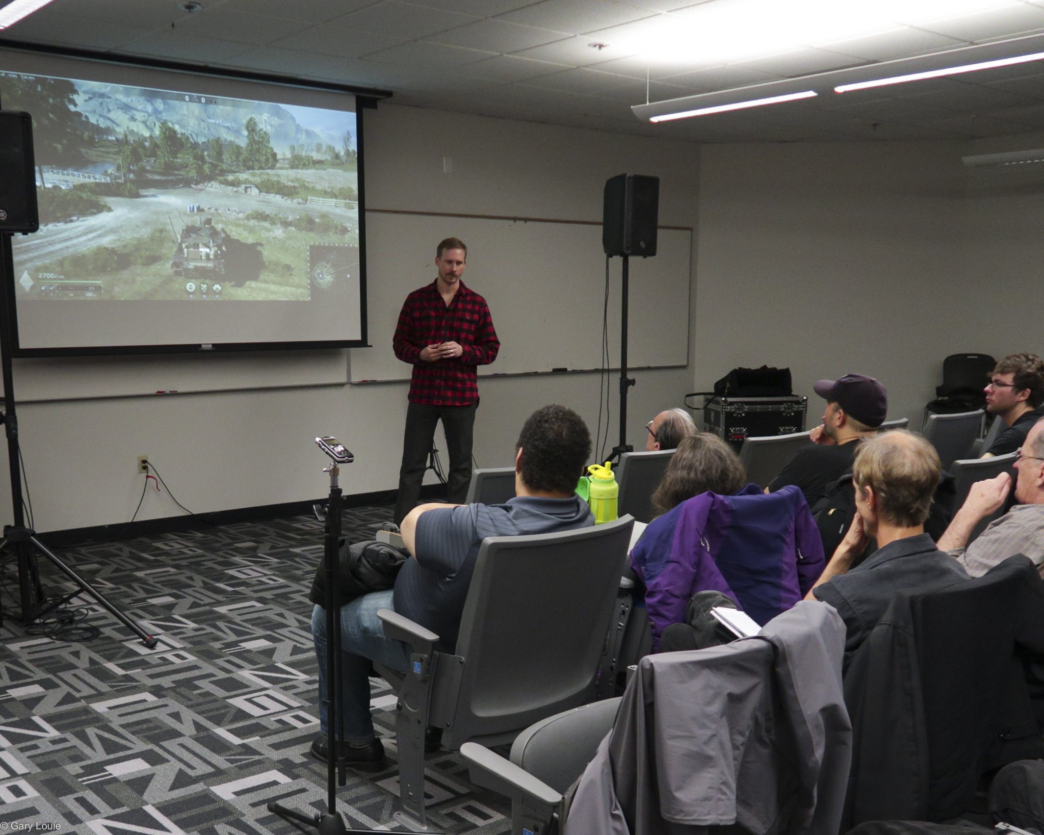 The PNW Section rumbled ahead with its November 2019 meeting, featuring game sound designer Stephen Brown explaining how to record an Abrams tank and more. About 38 attended (7 AES members) the presentation given at DigiPen in Redmond, WA.