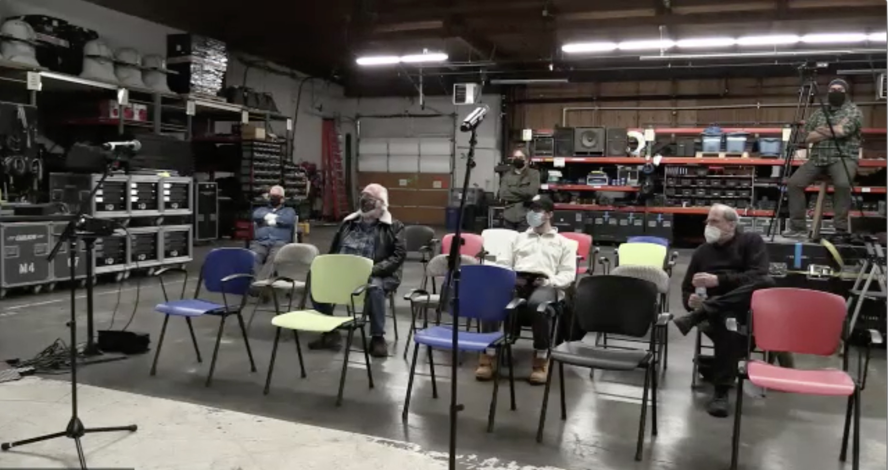 The live and Zoom audiences participated and asked many general live sound questions, including artists bringing their own mic, cleaning and repairing mics, working solo vs. with house techs, in-ear monitors, working with poor gear, mic drops, figuring who gets attention, making eye contact with the artists, signals with the artists, show files, intercoms, and hearing tests.